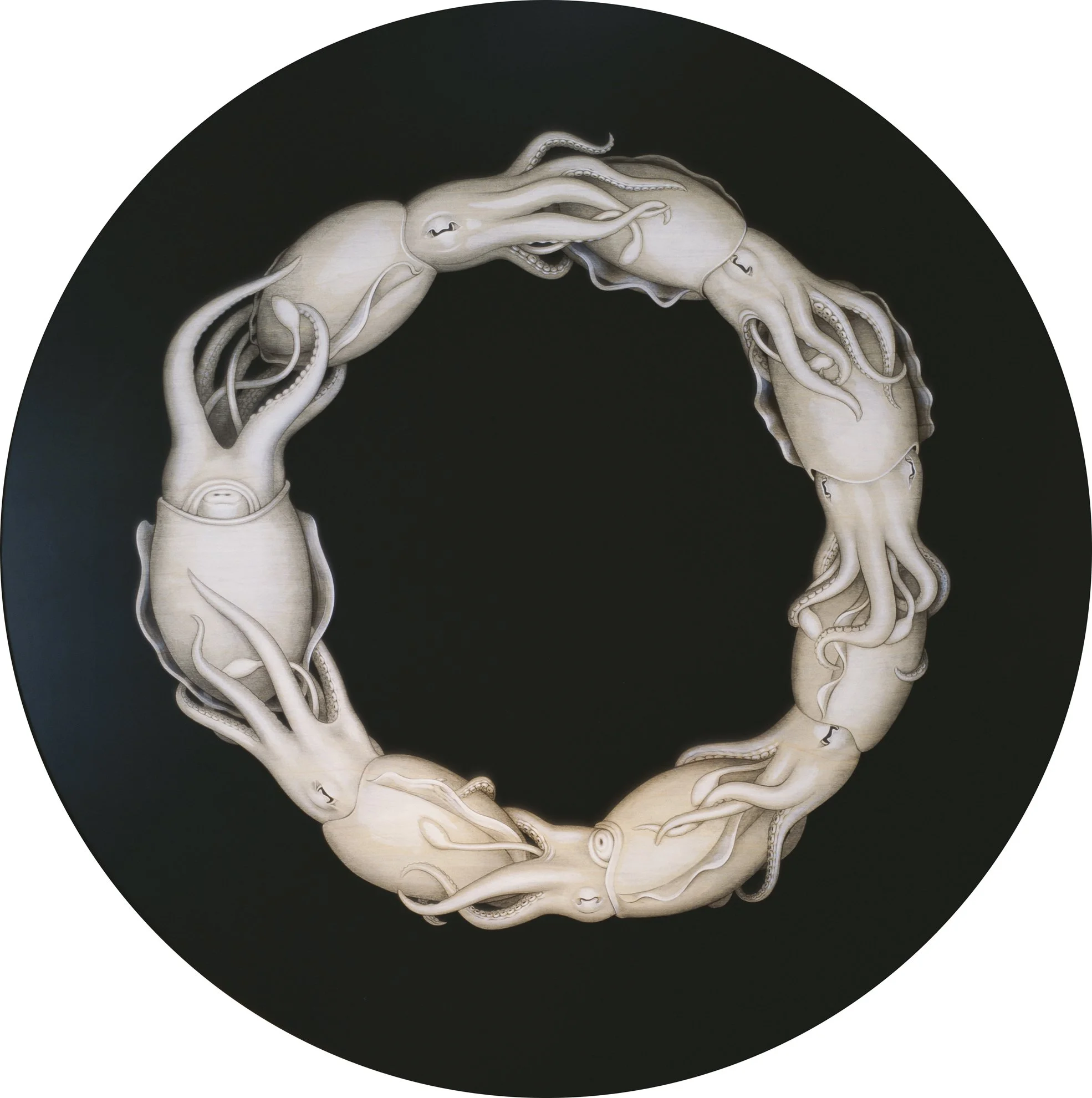 48” diameter, acrylic on maple panel, 2007