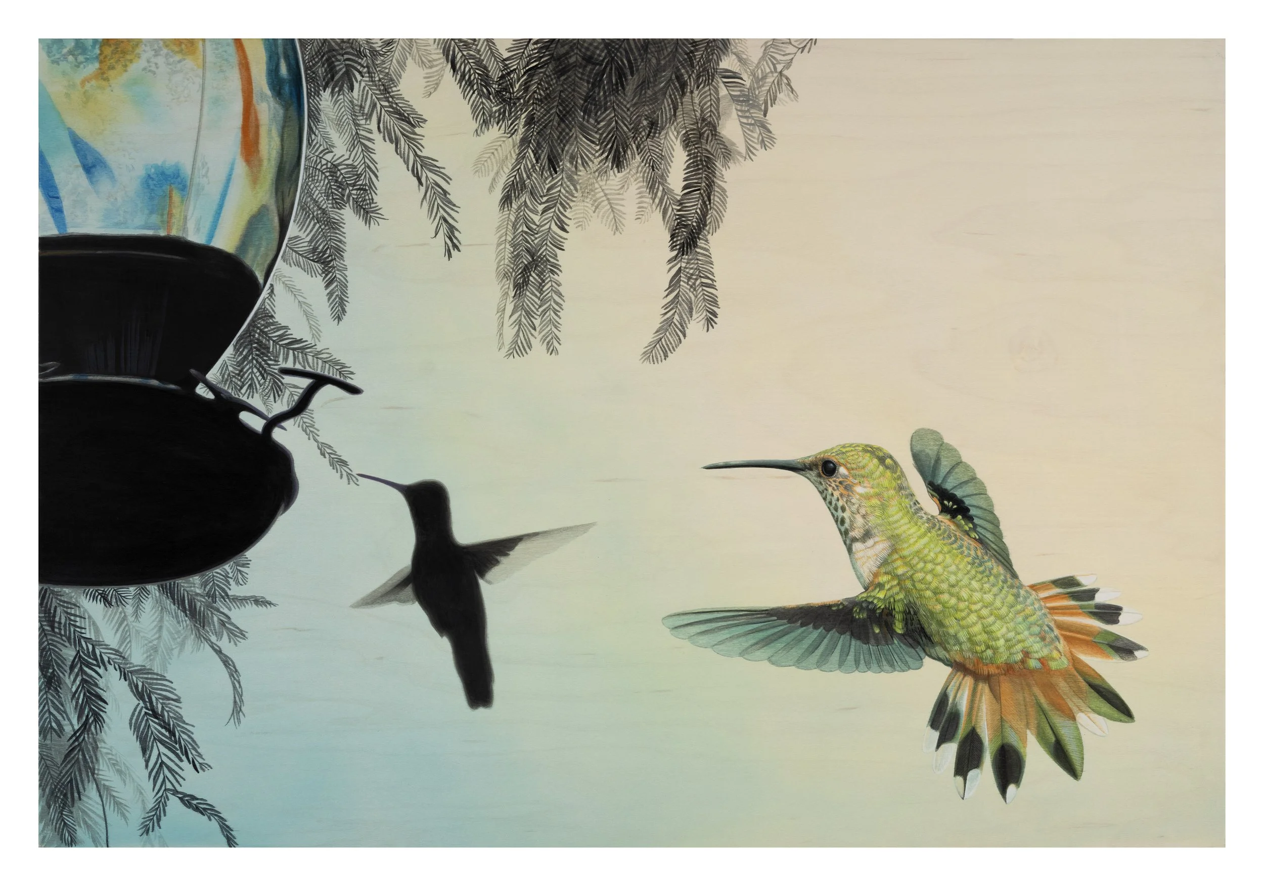 Created in Bozic’s signature technique of diluted acrylic on maple panel, this original painting was commissioned for Brave Baby Hummingbird (Simon & Schuster, 2024).